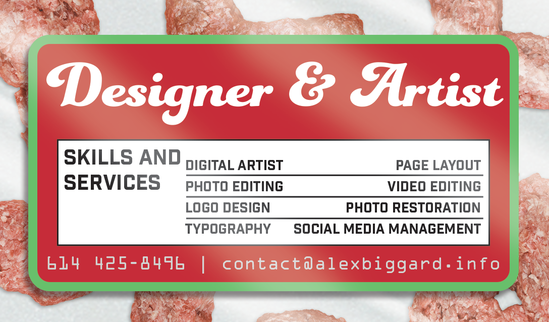 I'm a digital artist, graphic designer and comedian located in Columbus, Ohio. A lot of my work is influenced by my sense of humor and inspired from popular culture as well as nature. When I'm not creating my own pieces, I work with clients to make their visions a reality. I'm an experienced pre-press manager for a company I co-founded called Future Natural, where we translate hand drawn images to screen printed shirts.